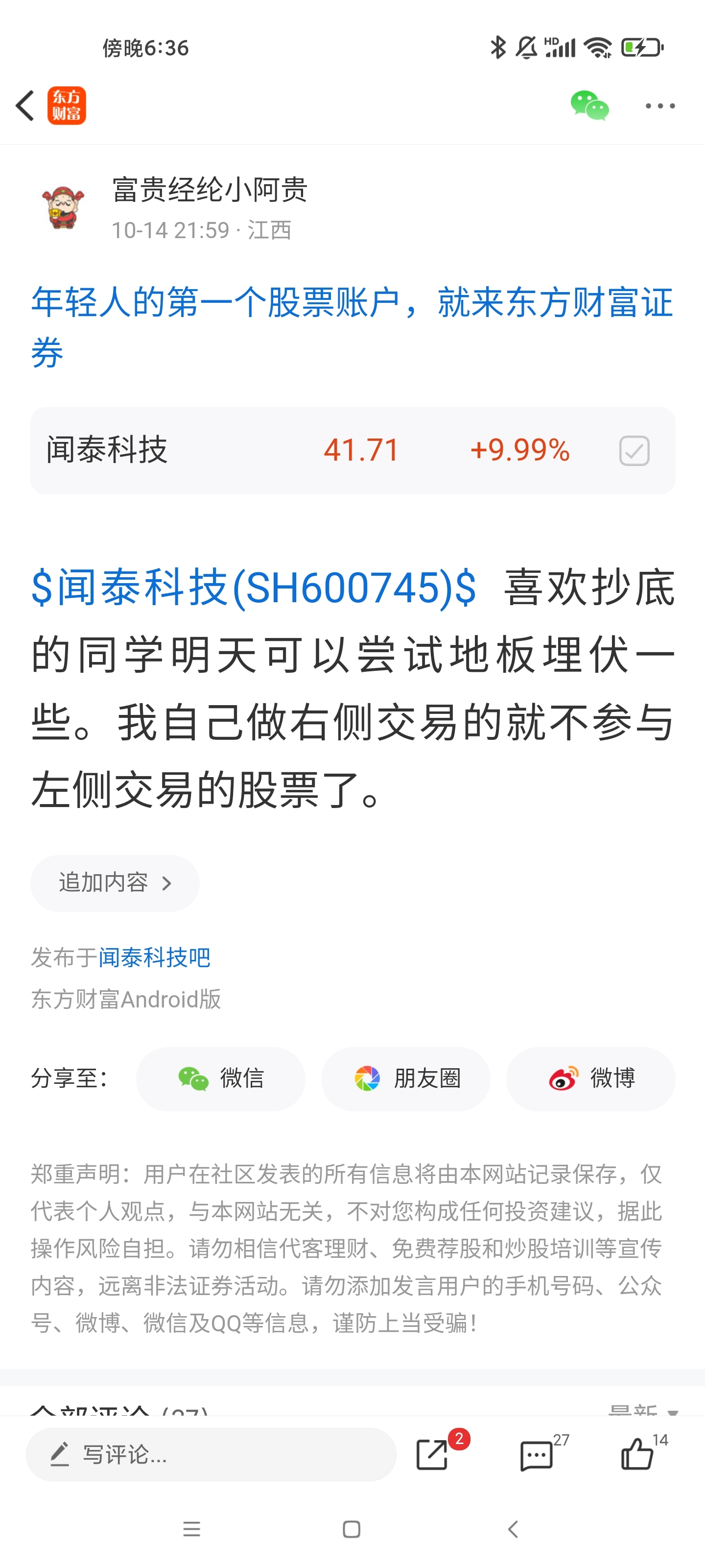 温馨提示: 1.根据《证券法》规定,禁止编造、传播虚假信息或者误导性信息,扰乱证券市场;2.用户在本社区发表的所有资料、言论等仅代表个人观点,与本网站立场无关,不对您构成任何投资建议。用户应基于自己的独立判断,自行决定证券投资并承担相应风险。《东方财富社区管理规定》