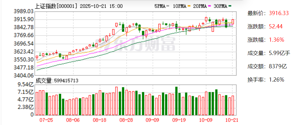 A股三大指数今日集体走强,沪指收复3900点整数关口。截止收盘,沪指涨1.36%,收报3916.33点;深证成指涨2.06%,收报13077.32点;创业板指涨3.02%,收报3083.72点。沪深两市成交额达到18739亿,较昨日放量1363亿。个股方面,上涨股票数量超过4600只,近百股涨停。