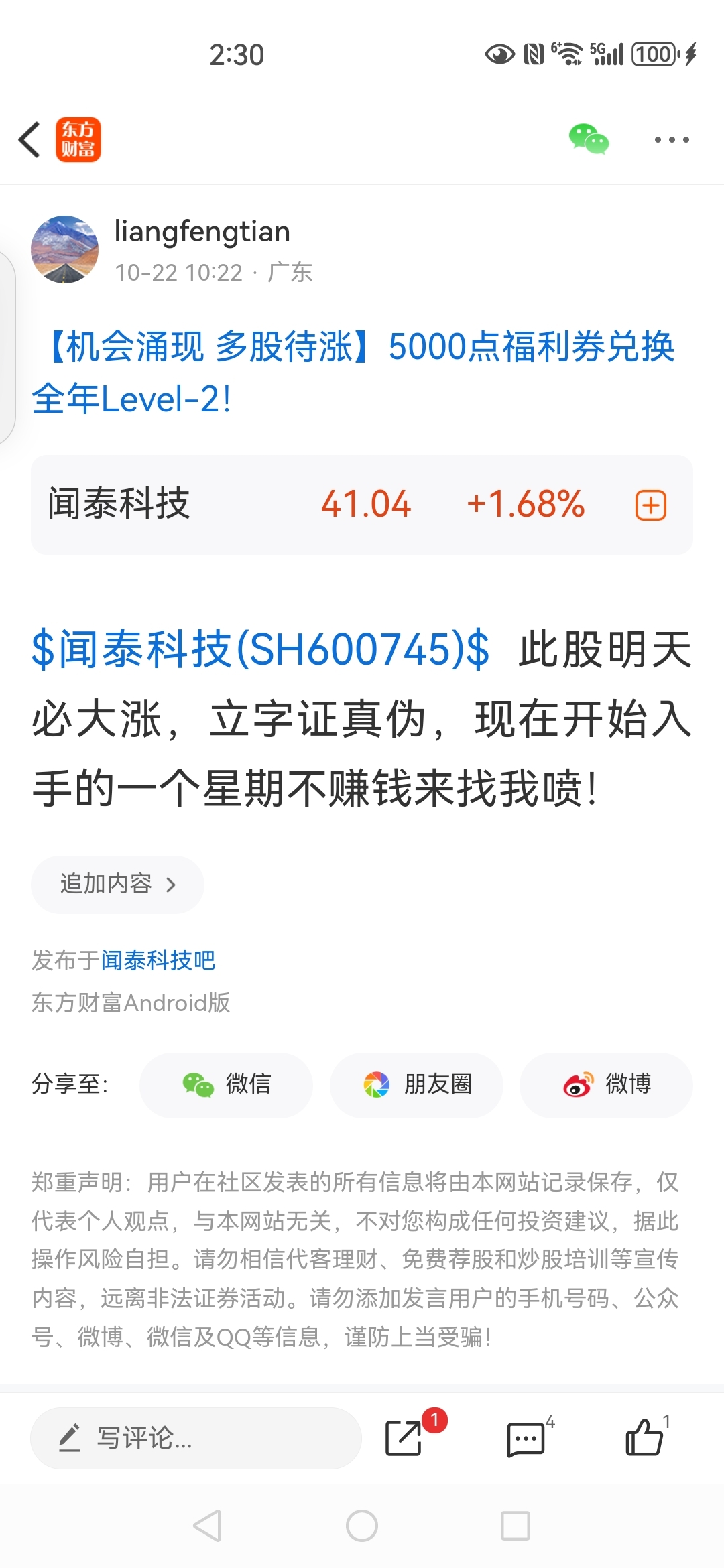 温馨提示: 1.根据《证券法》规定,禁止编造、传播虚假信息或者误导性信息,扰乱证券市场;2.用户在本社区发表的所有资料、言论等仅代表个人观点,与本网站立场无关,不对您构成任何投资建议。用户应基于自己的独立判断,自行决定证券投资并承担相应风险。《东方财富社区管理规定》