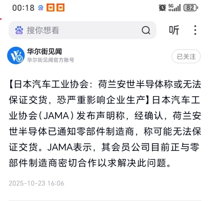 JAMA表示,其会员公司目前正与零部件制造商“中国安世”密切合作以求解决此问题