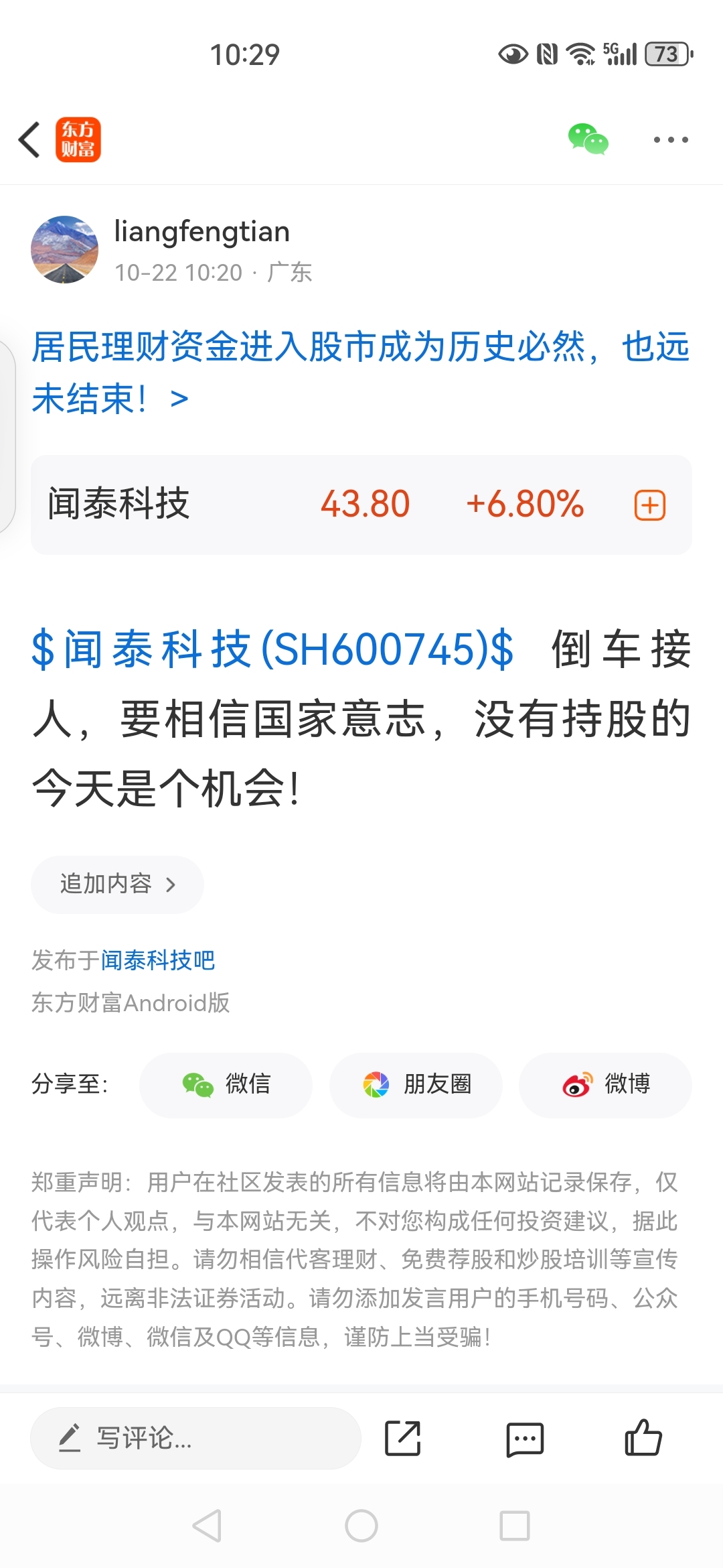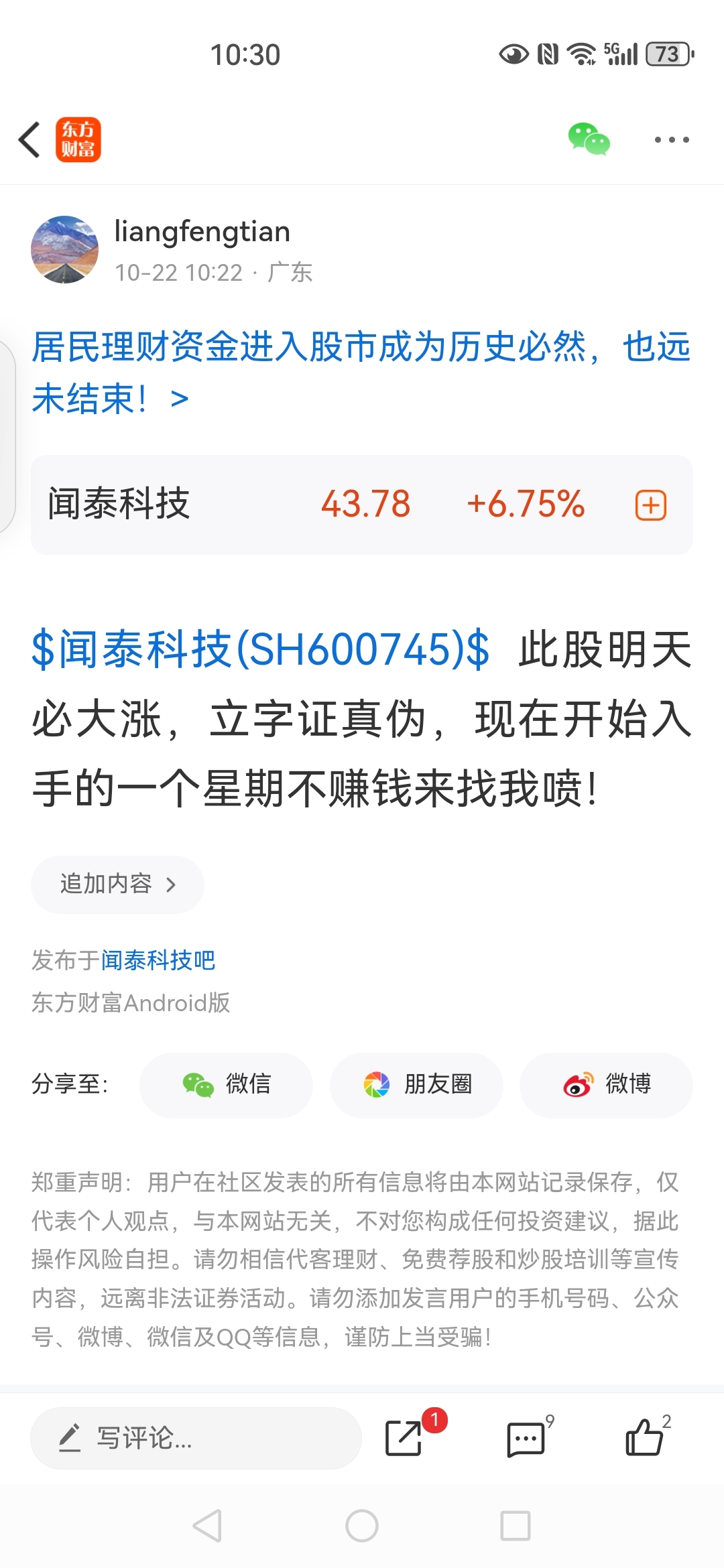 温馨提示: 1.根据《证券法》规定,禁止编造、传播虚假信息或者误导性信息,扰乱证券市场;2.用户在本社区发表的所有资料、言论等仅代表个人观点,与本网站立场无关,不对您构成任何投资建议。用户应基于自己的独立判断,自行决定证券投资并承担相应风险。《东方财富社区管理规定》