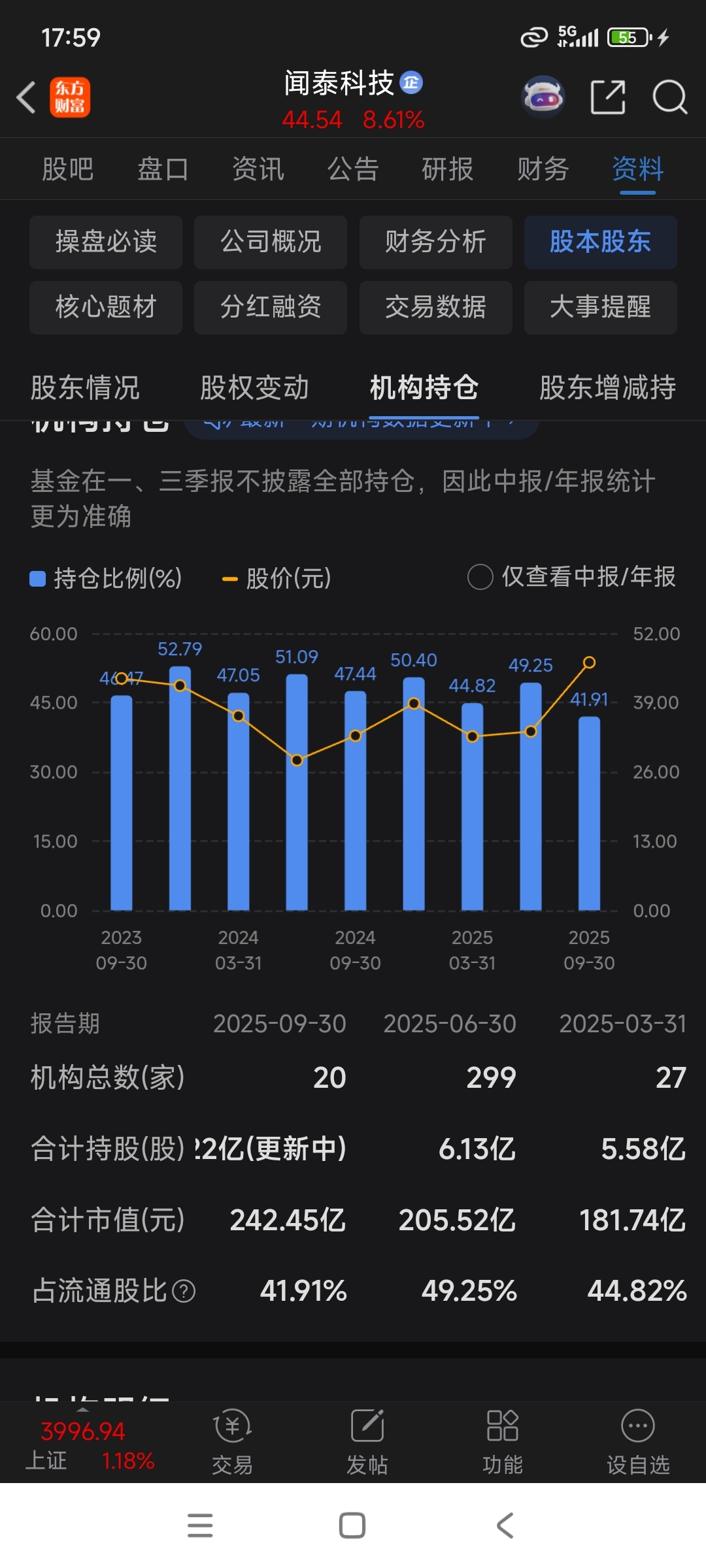 $闻泰科技(SH600745)$ 有一个数据,大家分析一下,机构家数