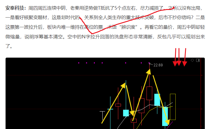 $安泰科技(SZ000969)$:周末不少朋友质疑老秦,说这票连续大阴出货了。老秦只能呵呵了,因为多年的盘感告诉我它恰在启动前夜,盘前老秦特意画了个形态简图,并虚拟出了一个涨停K线。市场也不含糊,就是照着图走的,老秦按计划盘中加仓,已经开始吃肉了。周五留言区提示-7%抄底,你们是不是应该表示一下啊?就想问提示大家抄自己的底,有这样无私的大V没?市场已经替我证明了实力。不马后炮,只做前瞻!想第一时间跟上老秦的下一个实盘提示?关住我,别错过。