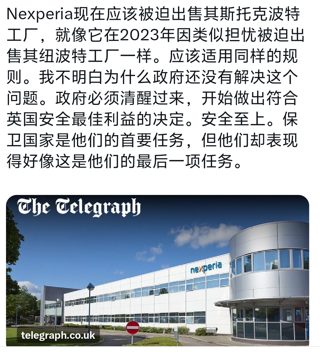 先是德国佬支持荷兰安世国有化然后来找想解开安世芯片被拒,又来个英国佬想把安世在斯