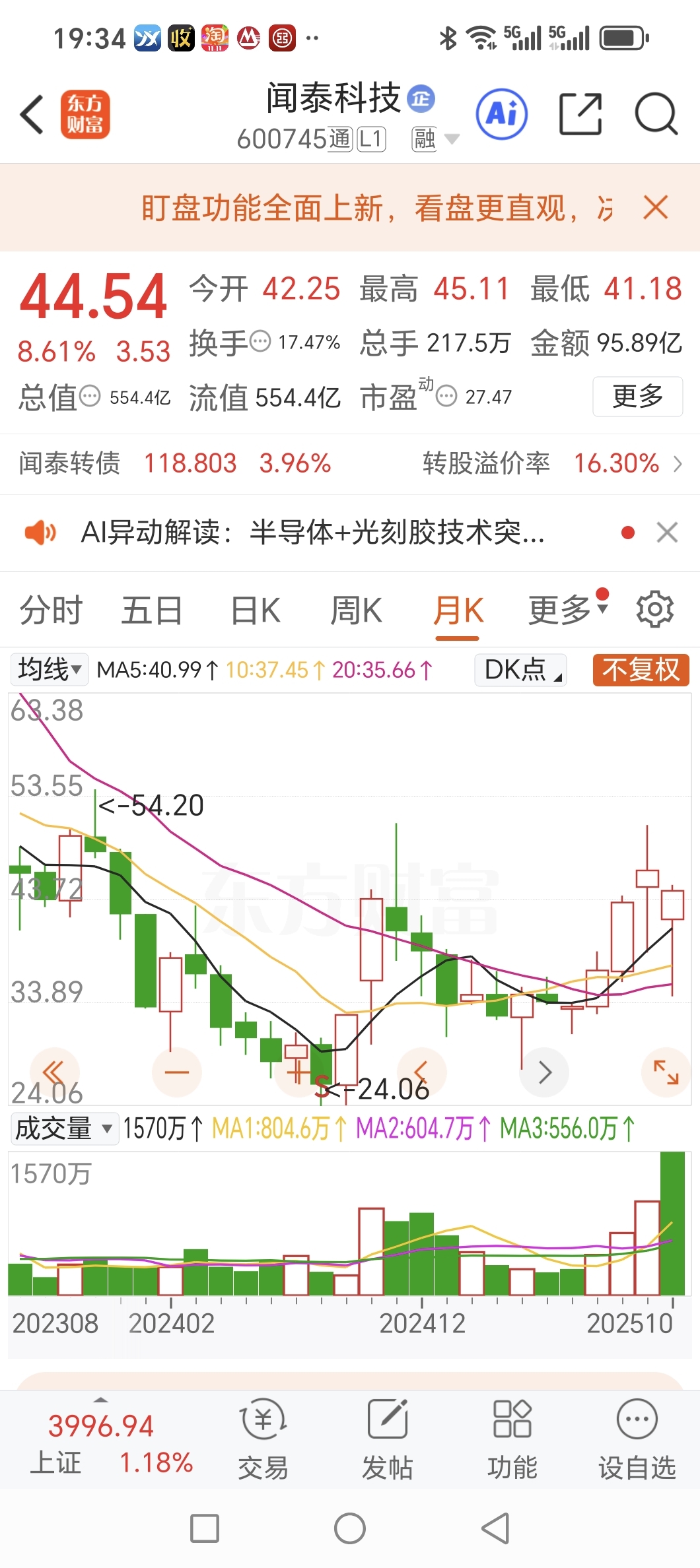 $闻泰科技(SH600745)$ 看看月线,还完全处于底部盘整区域!