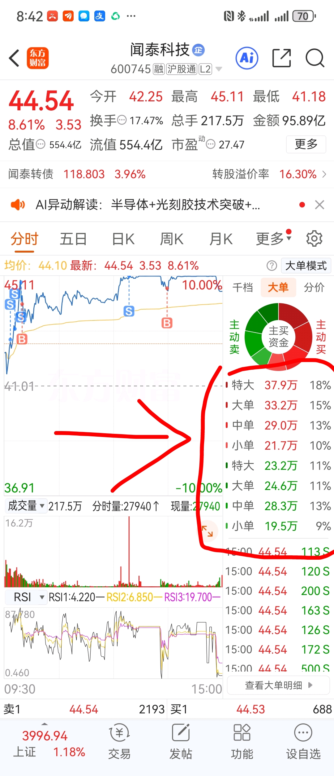 看这大单流入多狠,以后闻泰是有庄的股了!