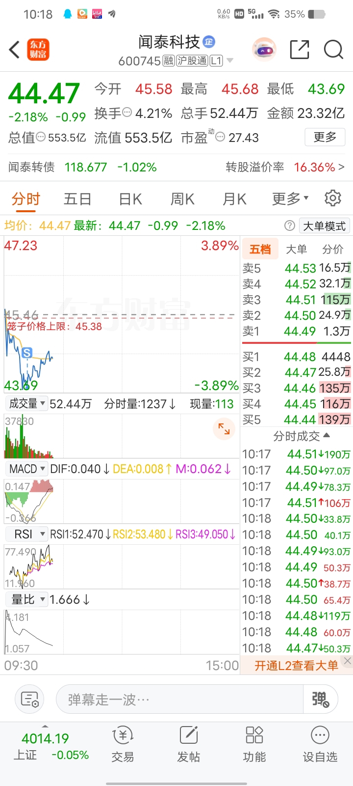 $闻泰科技(SH600745)$ 午盘如果大涨请对我说谢谢