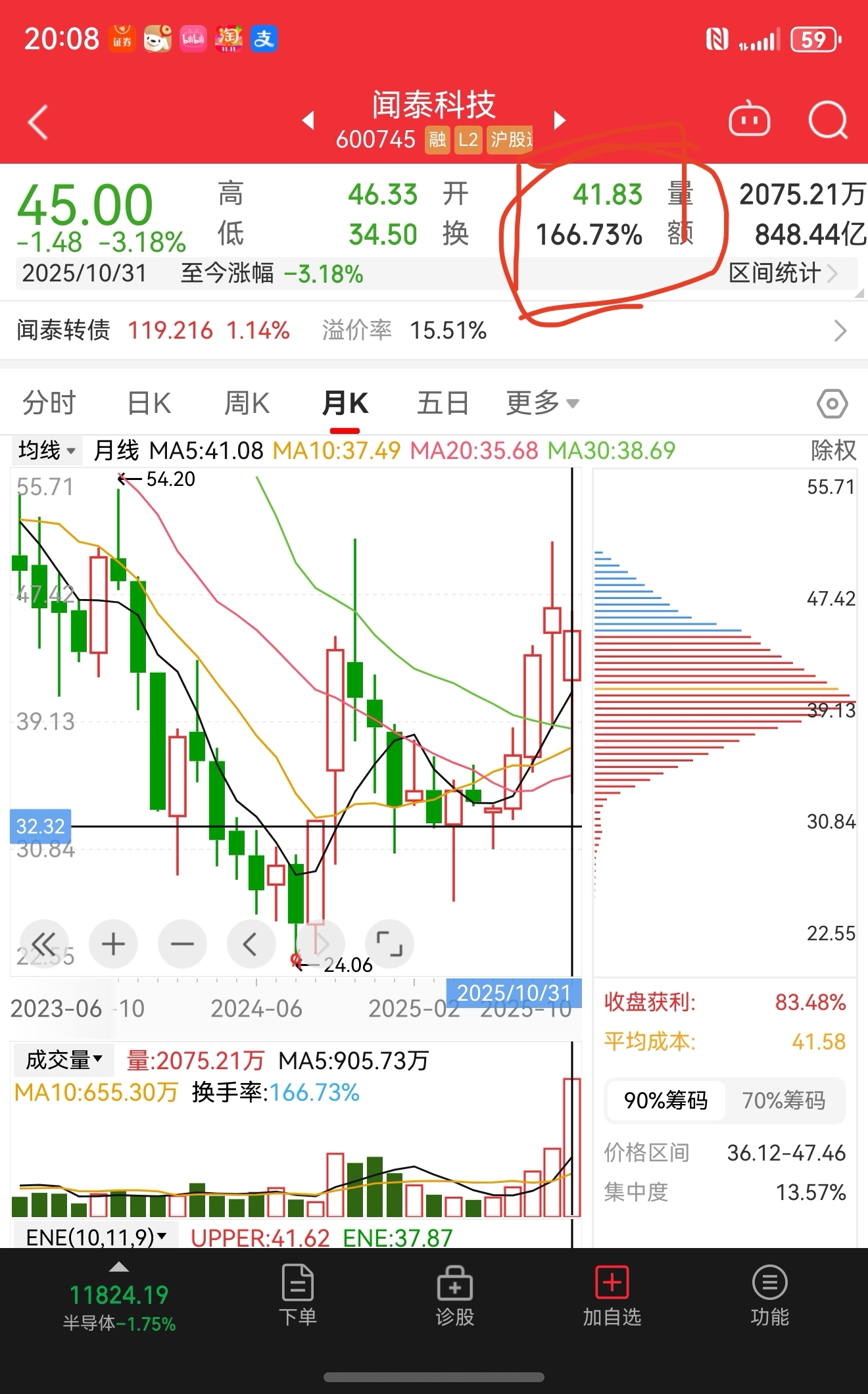 除去5%以上的股东,月换手200%多了,怕死的都卖了,留下来的基本是头铁了!闻泰