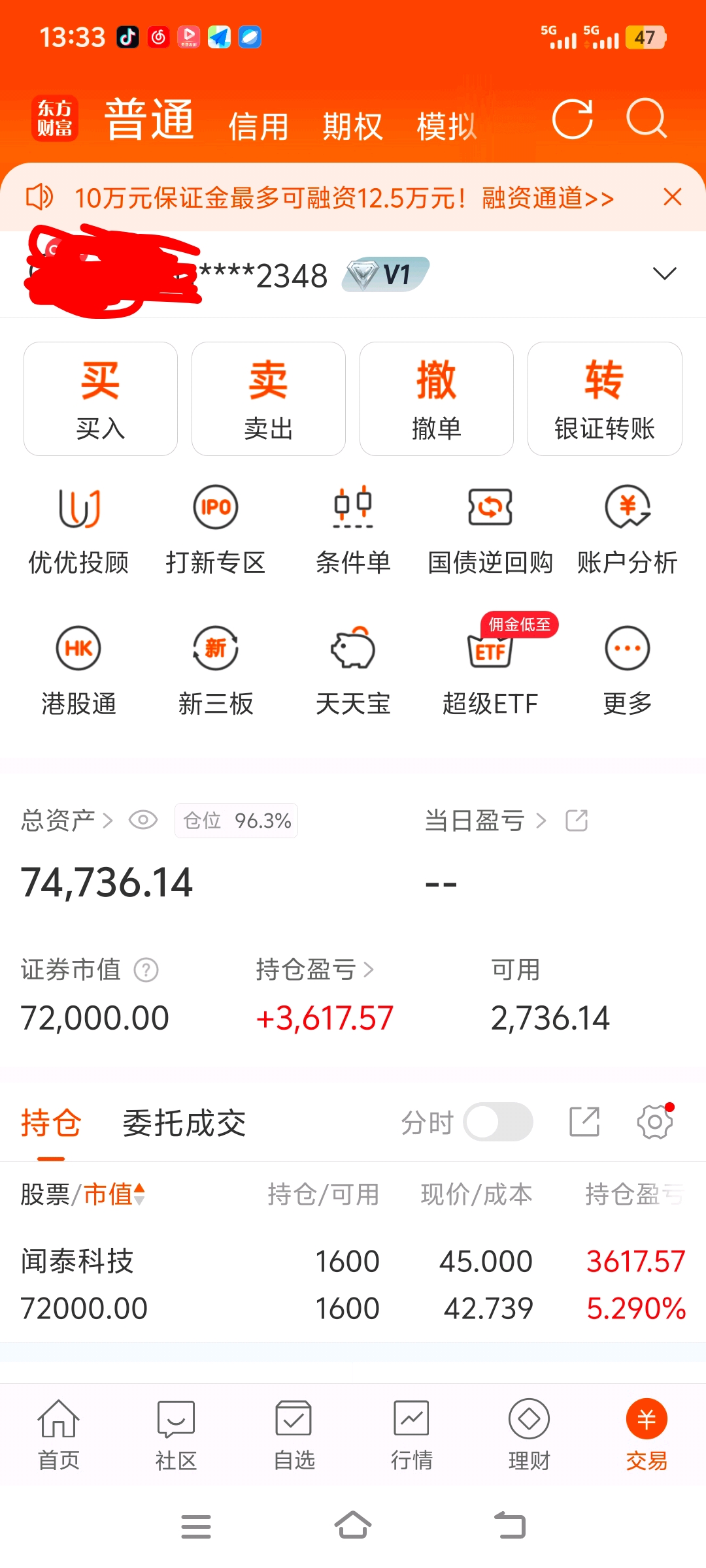 入股市一年了,亏了五万多。1600股全仓闻王,希望能回本