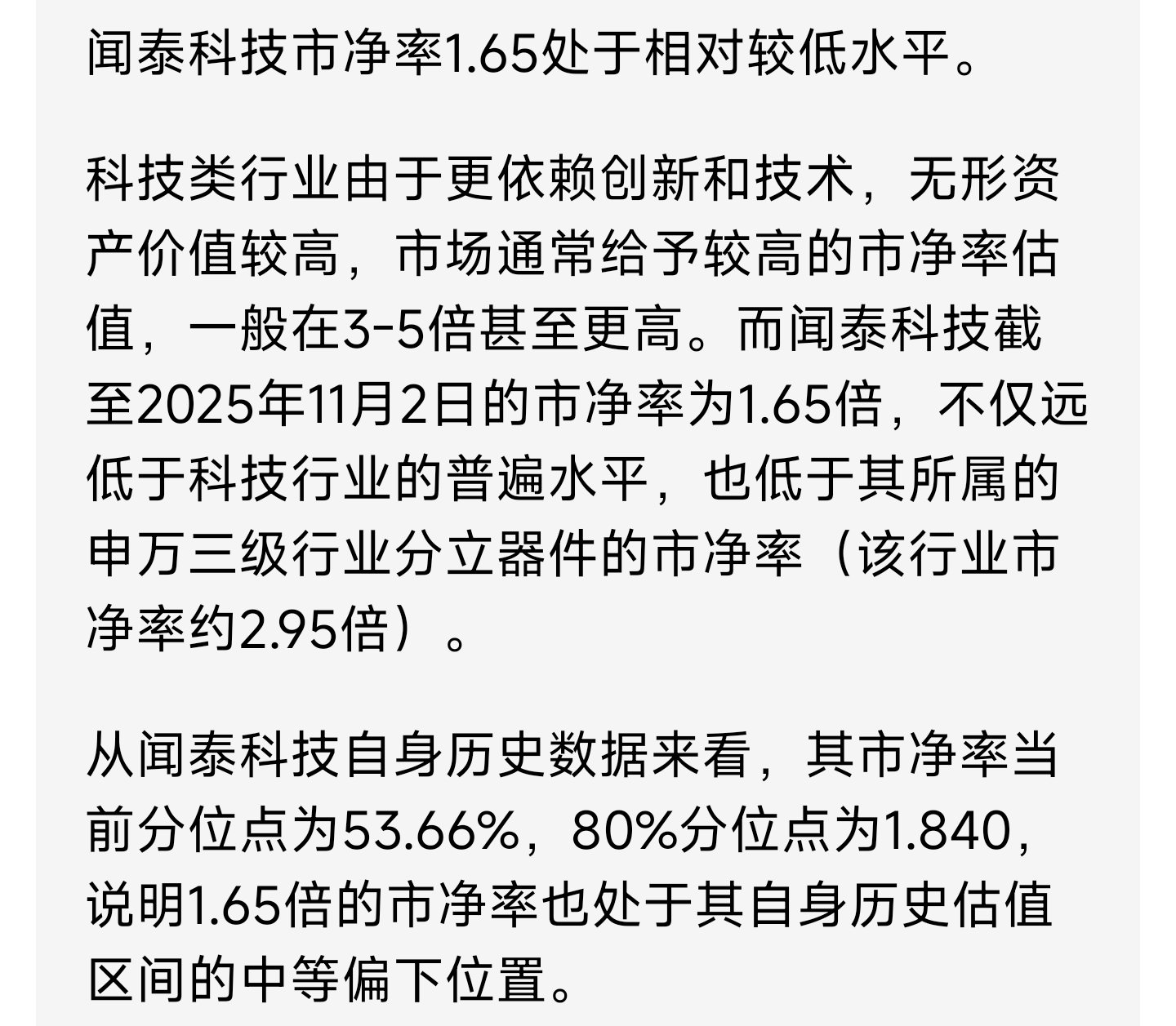 时下热门的科技股,分立器股,芯片股,半导体股,貌似市净率绝大部分都高于闻泰科技。闻泰科技市净率竟然只有1.65……时下荷兰豆给做免费广告,是不是值得搏一搏?……周一进场迟不迟?