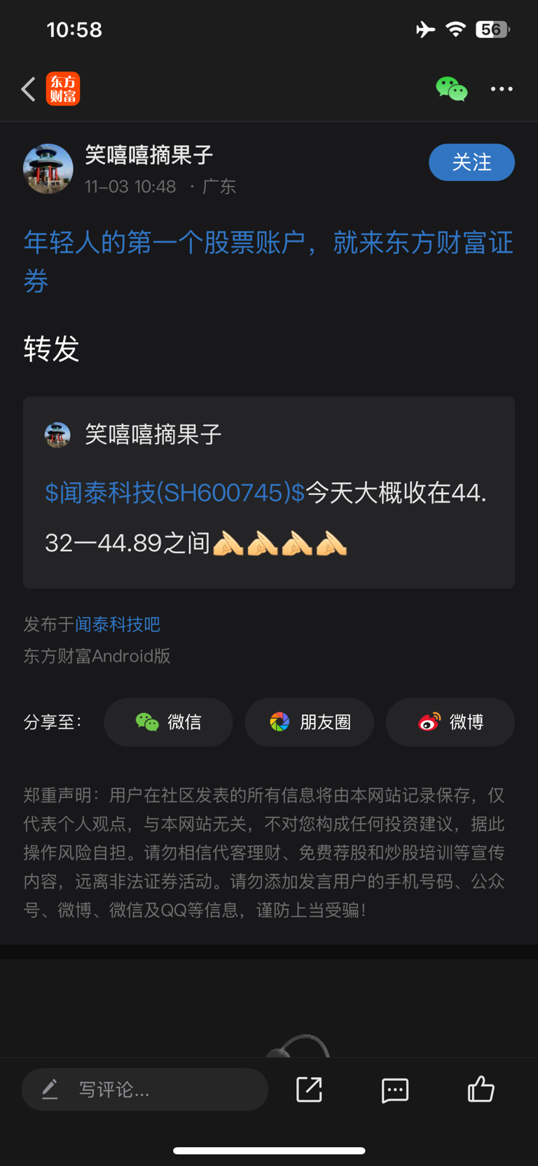 温馨提示: 1.根据《证券法》规定,禁止编造、传播虚假信息或者误导性信息,扰乱证券市场;2.用户在本社区发表的所有资料、言论等仅代表个人观点,与本网站立场无关,不对您构成任何投资建议。用户应基于自己的独立判断,自行决定证券投资并承担相应风险。《东方财富社区管理规定》