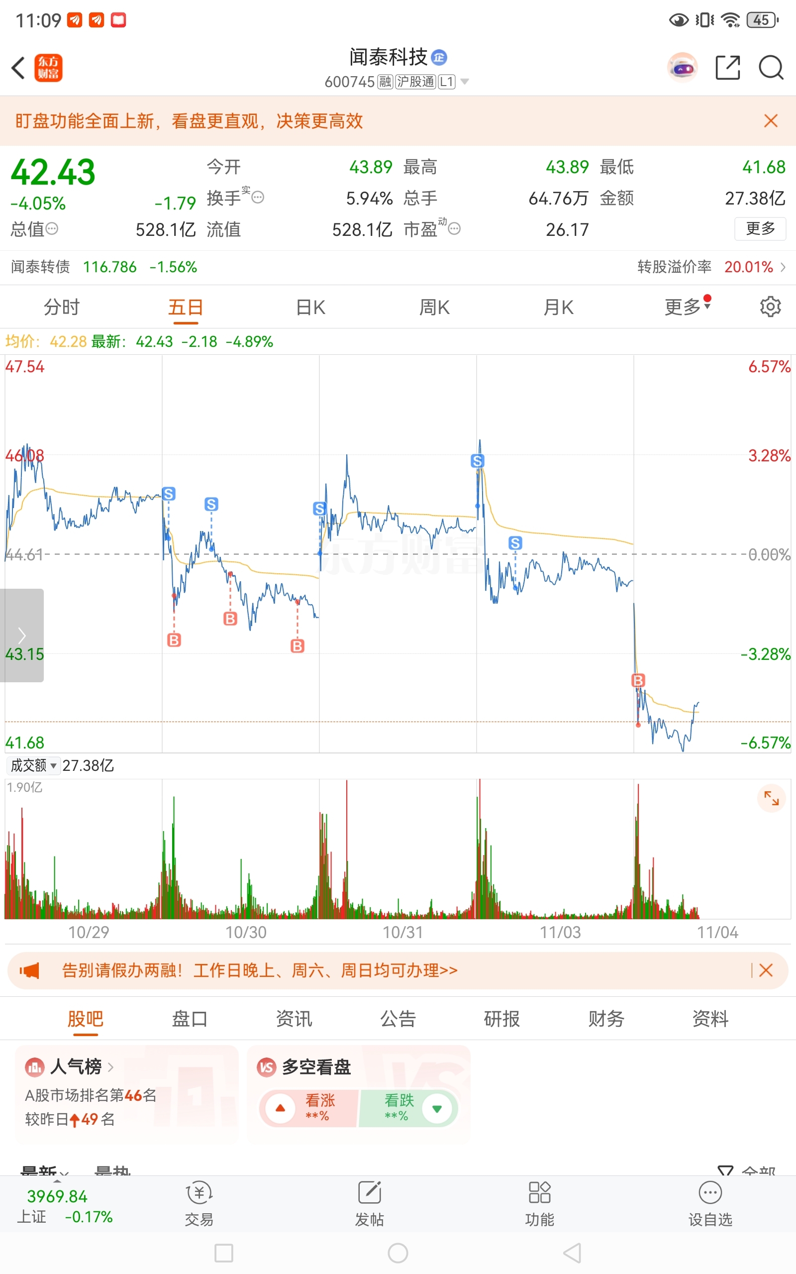 $闻泰科技(SH600745)$ 昨天清仓,今天开始建仓