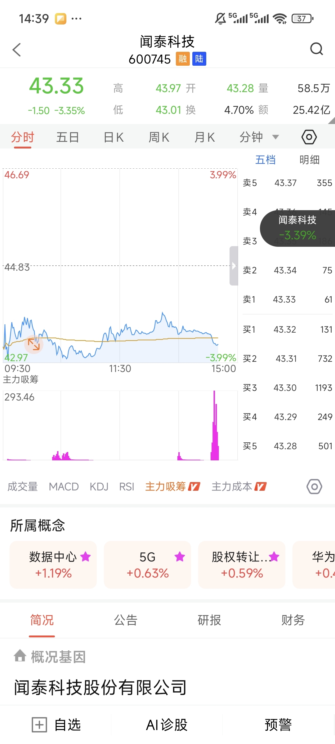 $闻泰科技(SH600745)$ 今天主力吸筹了
