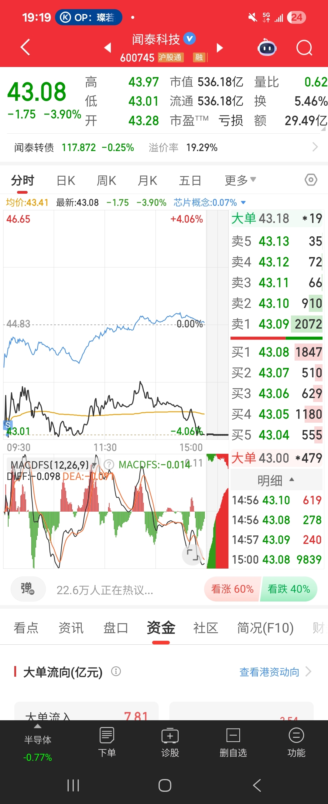 $闻泰科技(SH600745)$ 低点卖了,尾盘差一点点就买回来了,好险啊,哈哈哈