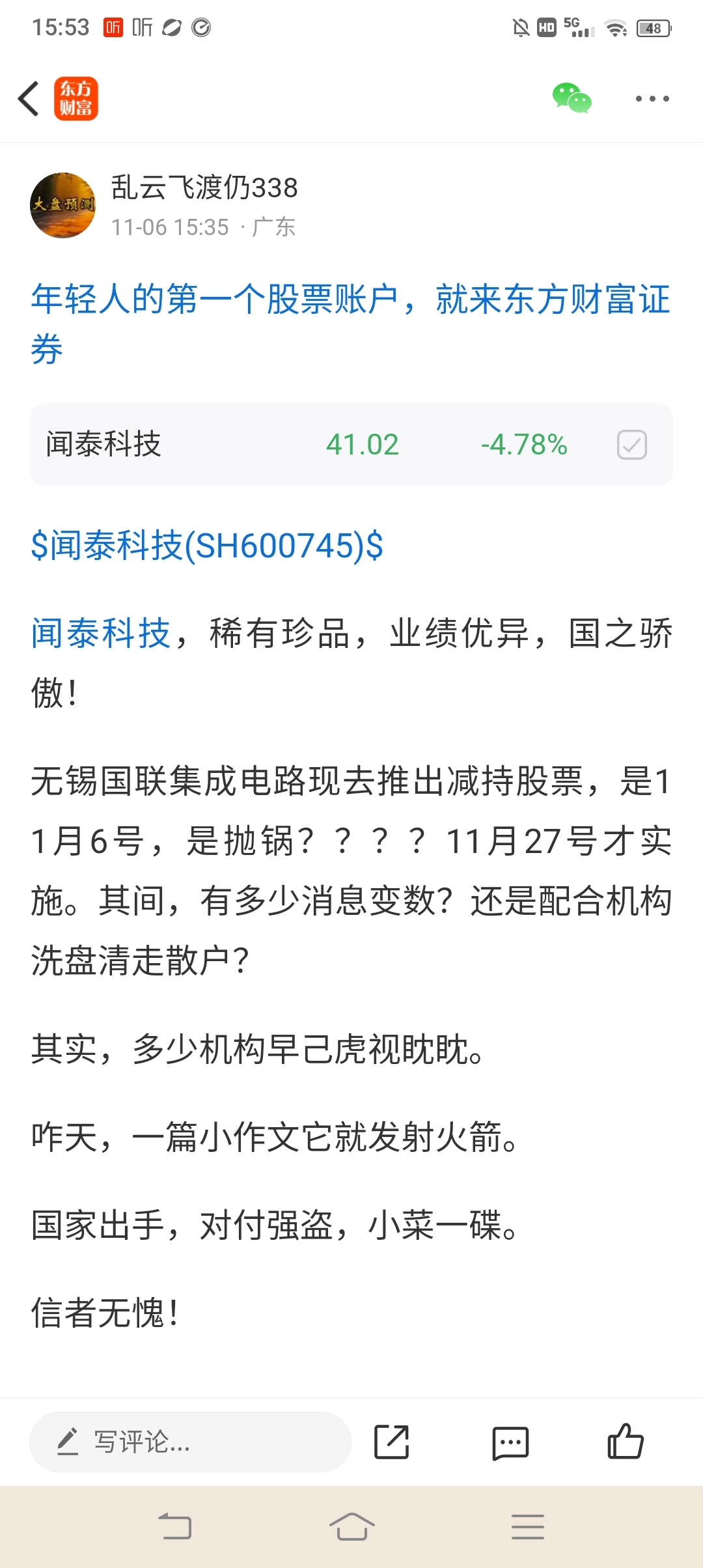 温馨提示: 1.根据《证券法》规定,禁止编造、传播虚假信息或者误导性信息,扰乱证券市场;2.用户在本社区发表的所有资料、言论等仅代表个人观点,与本网站立场无关,不对您构成任何投资建议。用户应基于自己的独立判断,自行决定证券投资并承担相应风险。《东方财富社区管理规定》