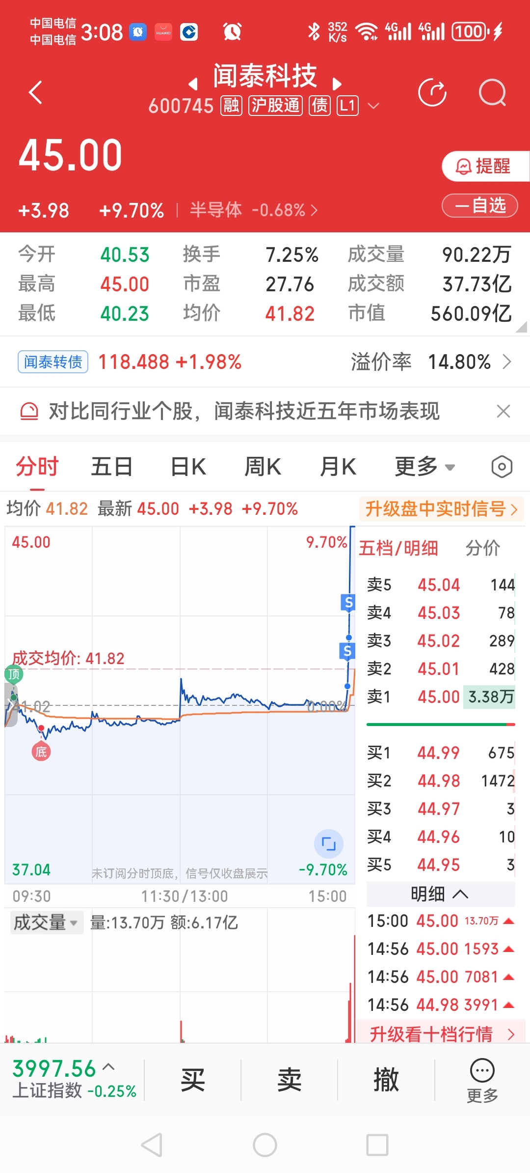 $闻泰科技(SH600745)$ 最后2分钟吃偶2百股,迅速拉涨停