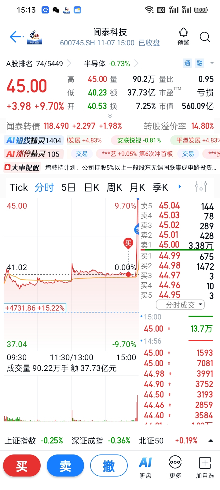$闻泰科技(SH600745)$ 做T爽吧