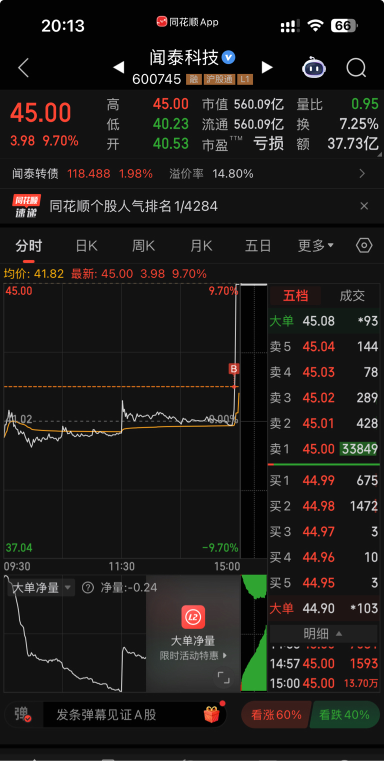 $闻泰科技(SH600745)$ 一念之间,拼的是手速,不管下周一涨跌如何,这个周末心情很愉悦。
