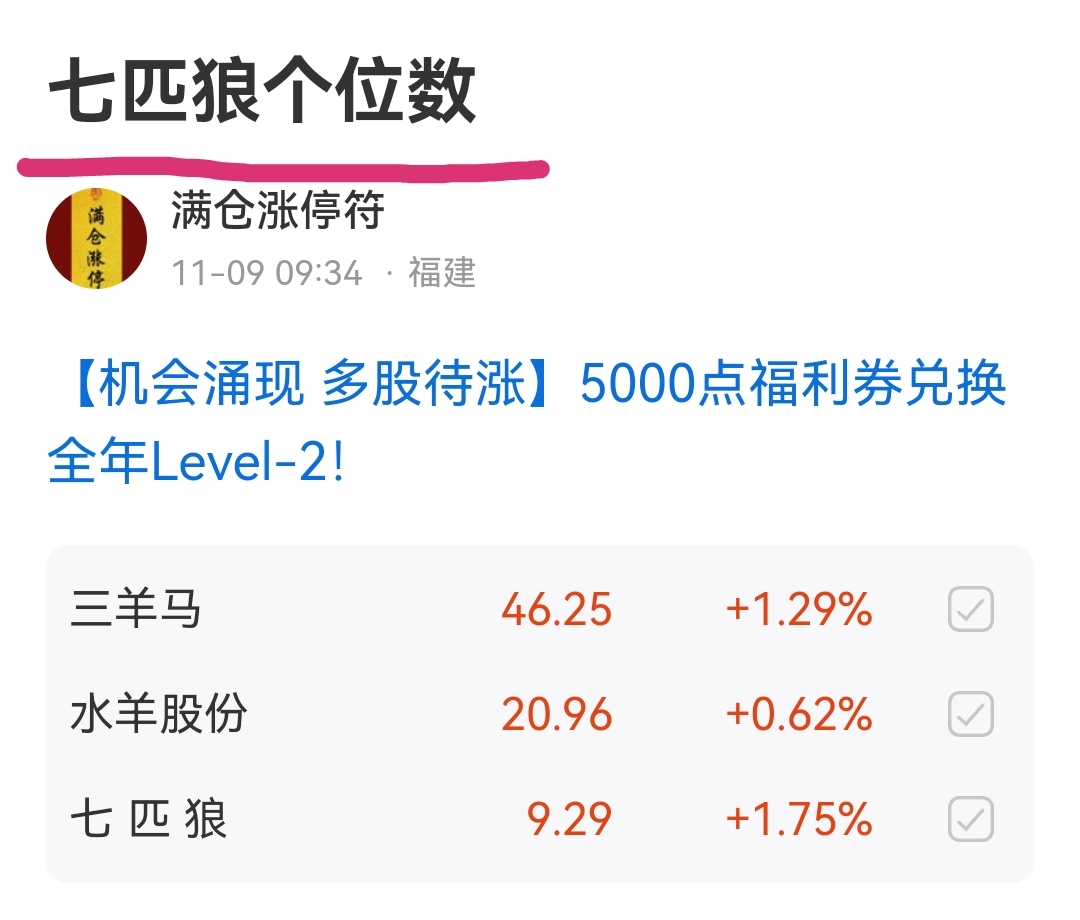 $闻泰科技(SH600745)$ $多氟多(SZ002407)$ $福龙马(SH603686)$ 七匹狼个位数,还记得去年的葫芦娃主升浪吗?