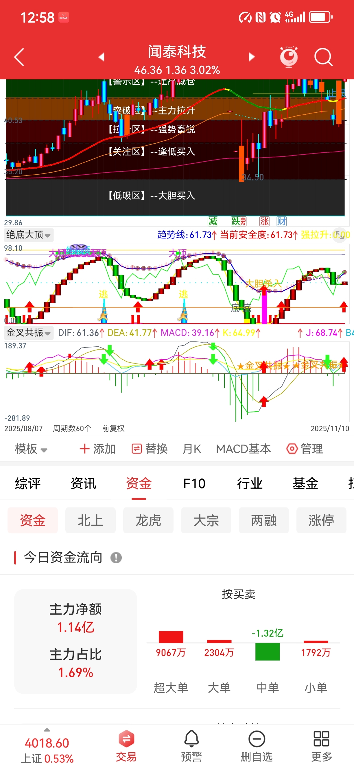 :11月10日,主力机构资金净流入一览:我三个软件显示,主力机构都是净流入1亿左
