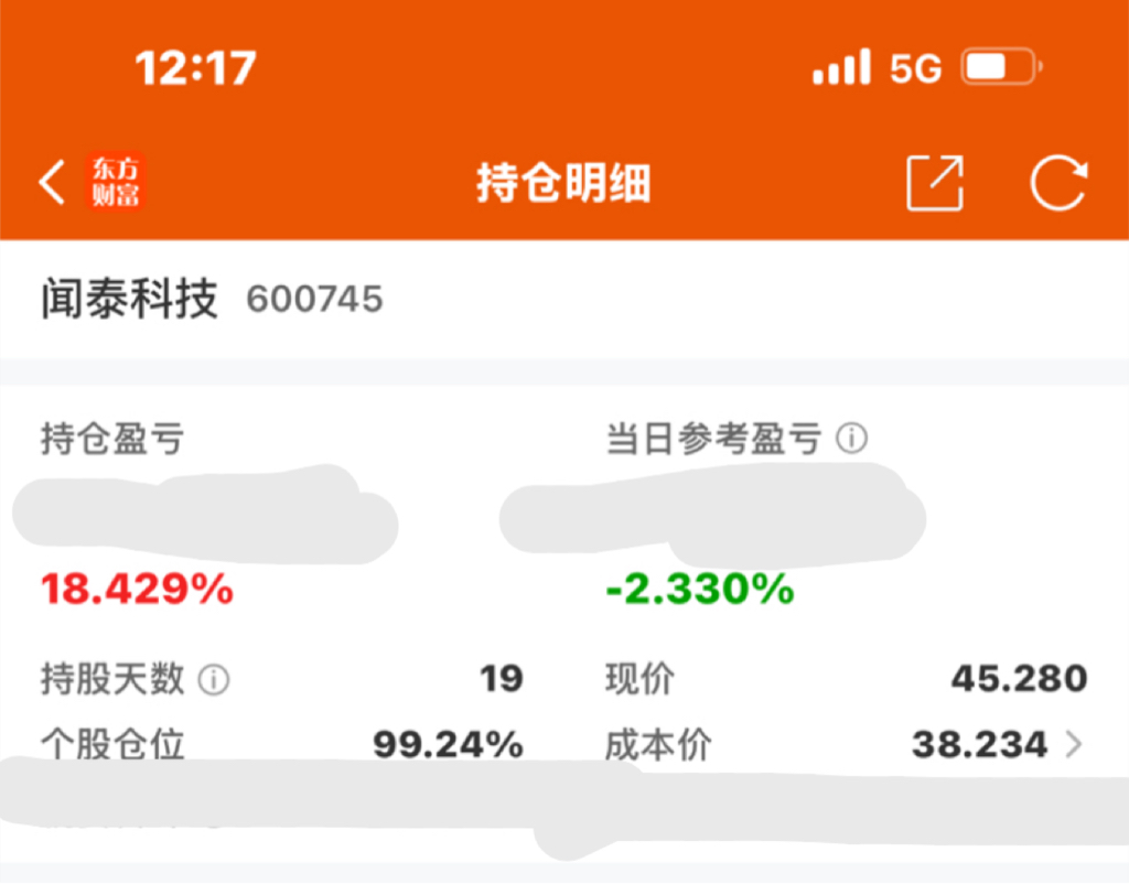 $闻泰科技(SH600745)$ 满仓还有18个点的利润!怕的得!回调一下就受不了,这样那样的!干脆别炒股了!去买债权吧!现在就是震荡涨多了回调一下再涨,毕竟前高是密集成交区!