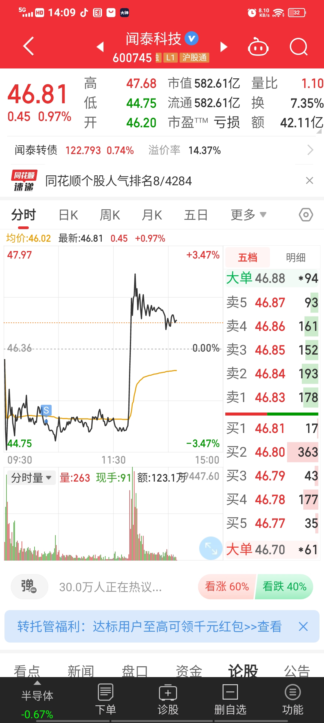 $闻泰科技(SH600745)$ 一割就拉,没谁了,盯着我?
