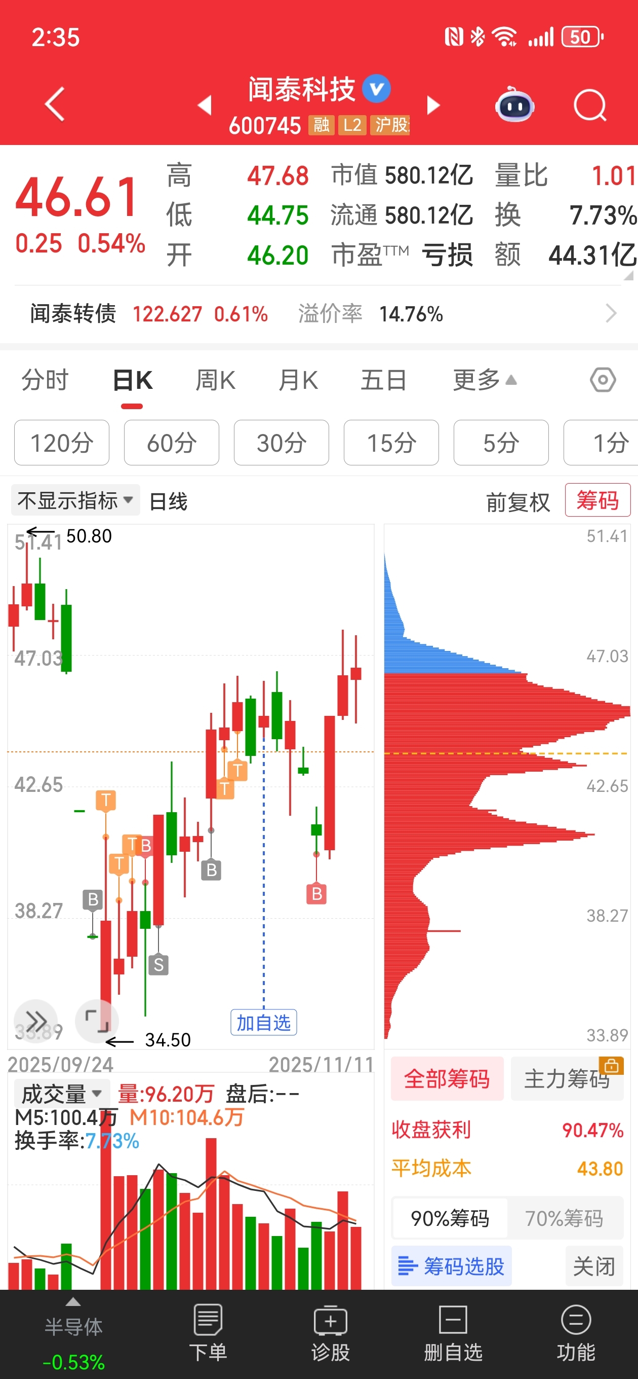 $闻泰科技(SH600745)$ 这阴险的勾庄,要拉就放量拉,在这装25子。让场内资金绝望,50以下卖一股算我输