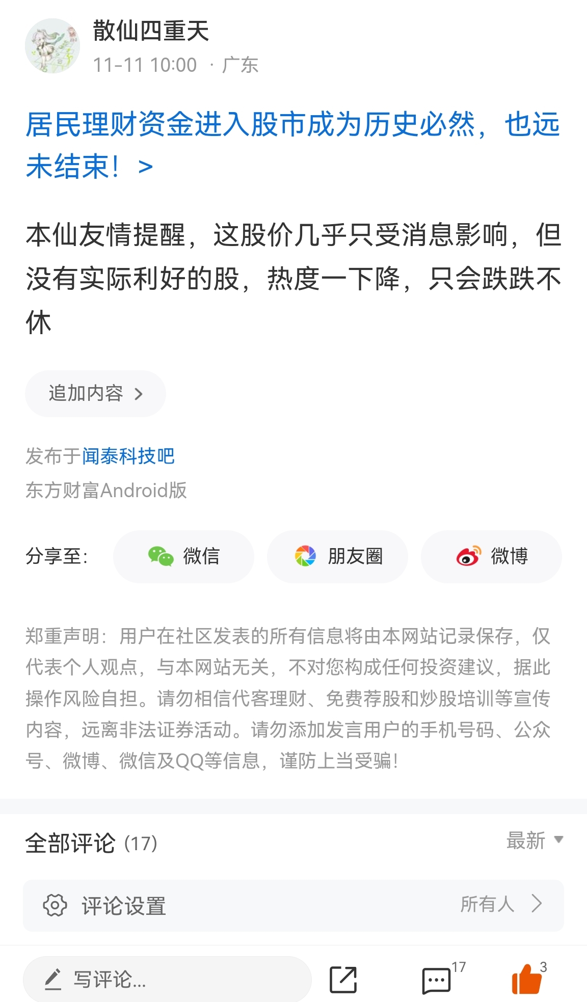 温馨提示: 1.根据《证券法》规定,禁止编造、传播虚假信息或者误导性信息,扰乱证券市场;2.用户在本社区发表的所有资料、言论等仅代表个人观点,与本网站立场无关,不对您构成任何投资建议。用户应基于自己的独立判断,自行决定证券投资并承担相应风险。《东方财富社区管理规定》