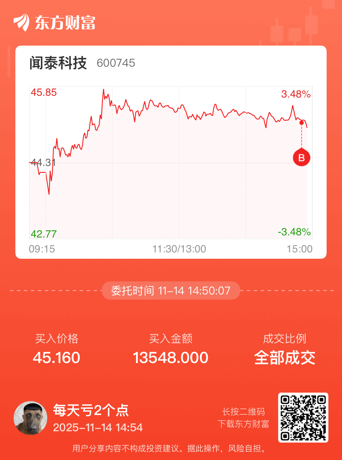 温馨提示: 1.根据《证券法》规定,禁止编造、传播虚假信息或者误导性信息,扰乱证券市场;2.用户在本社区发表的所有资料、言论等仅代表个人观点,与本网站立场无关,不对您构成任何投资建议。用户应基于自己的独立判断,自行决定证券投资并承担相应风险。《东方财富社区管理规定》