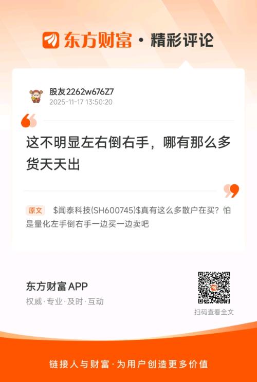 $闻泰科技(SH600745)$  真有这么多散户在买?怕是量化左手倒右手一边买一边卖吧