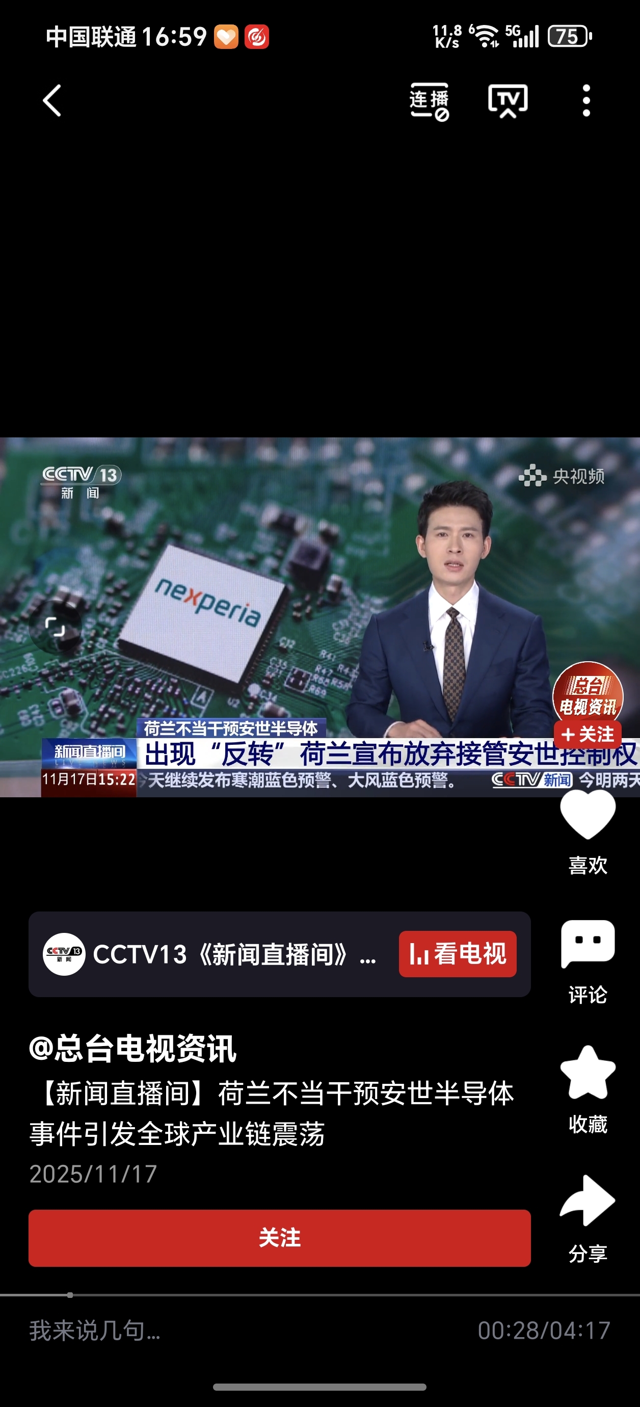$闻泰科技(SH600745)$ 本人信誉担保,亲自在“央视频”13频道截屏的。