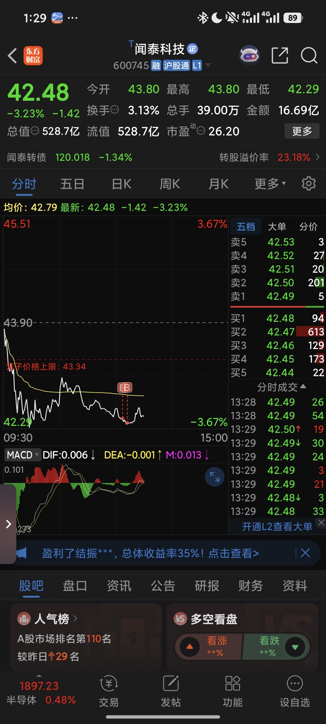 $闻泰科技(SH600745)$ 又是哪个兄弟被我抄了底