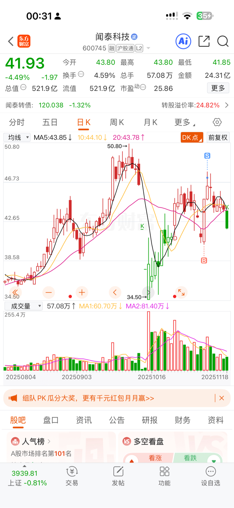 做了一波短线赚了几万,谢谢闻泰,祝留下坚守的发财