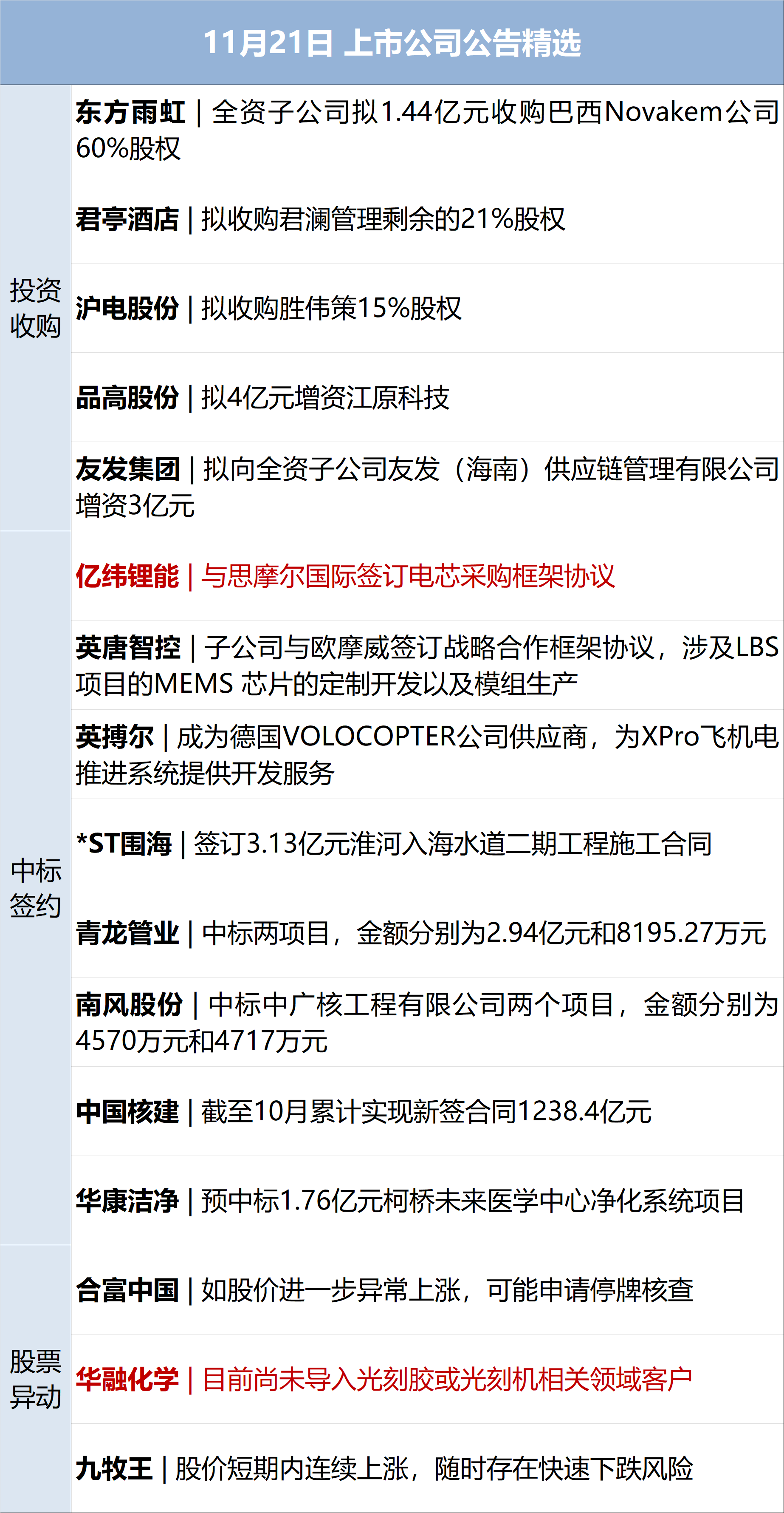 天合光能(SH688599,股价19.15元,市值417.35亿元);霸王茶姬(CHA,股价13.07美元,市值24亿美元):近日,光伏龙头天合光能创始人高纪凡之女高海纯与霸王茶姬创始人张俊杰的结婚请柬在网上流传。11月20日晚,天合光能对记者证实,双方将于近期举行婚礼,并感谢大家的祝福。天合光能相关负责人表示,双方相识于青年企业家学习活动,已登记结婚,由于此事属于个人事务,也期待大家给予一定的私人空间。双方公司均为上市公司,目前尚未有任何关联交易或商业合作。(界面新闻)
