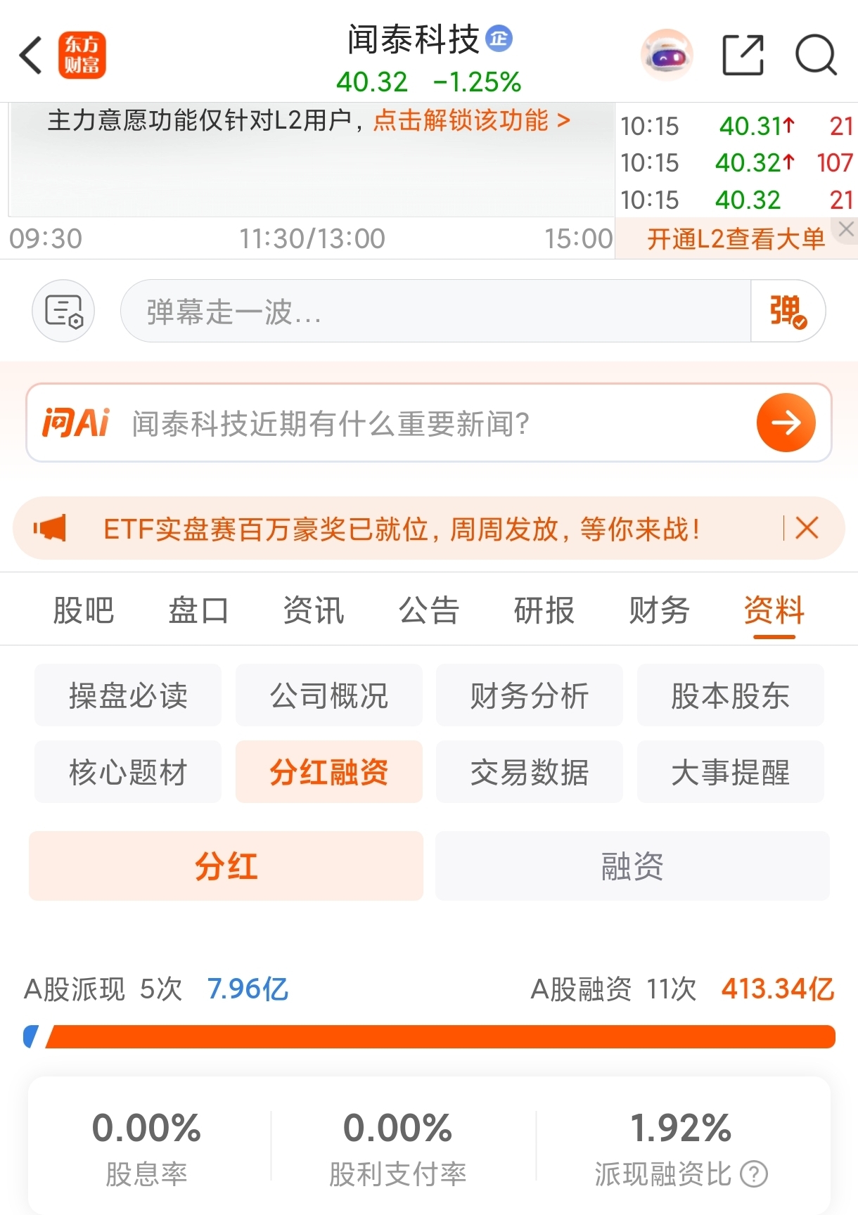 $闻泰科技(SH600745)$ 累积分红7个亿,累积融资413亿,股息率无限接近于0,为这样的企业玩情怀买单,散户何等伟大!感动