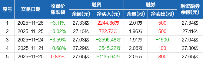闻泰科技:融资净买入2244.86万元,融资余额27.33亿元(11-26)