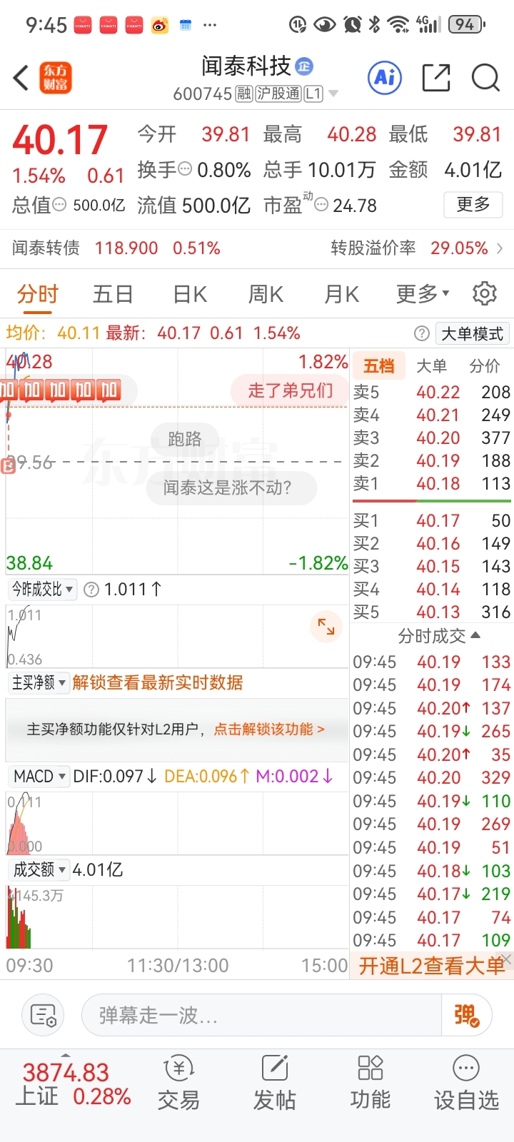 开盘兄弟们竞价39.81抢入了二股东减持的19万股打底~
