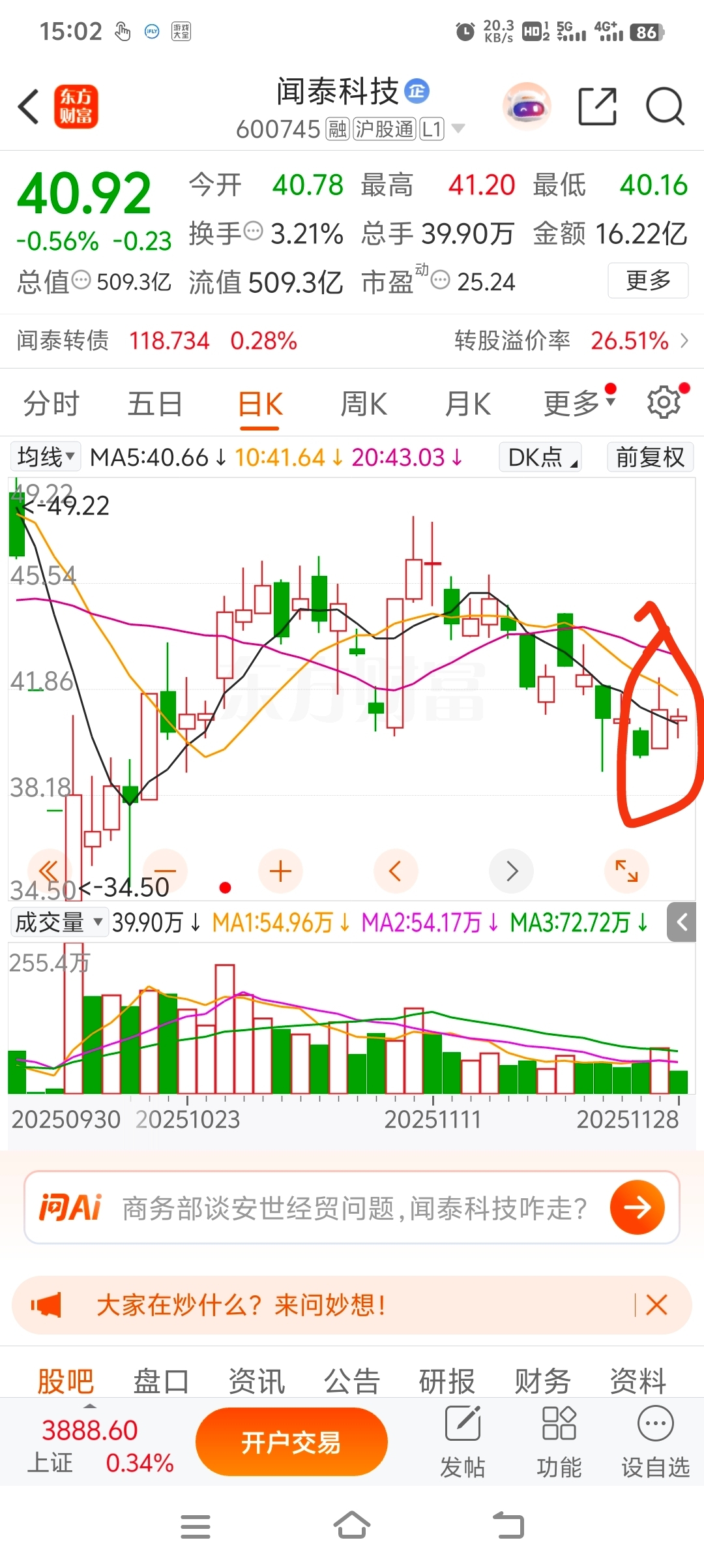第一,昨天堆量冲高回落