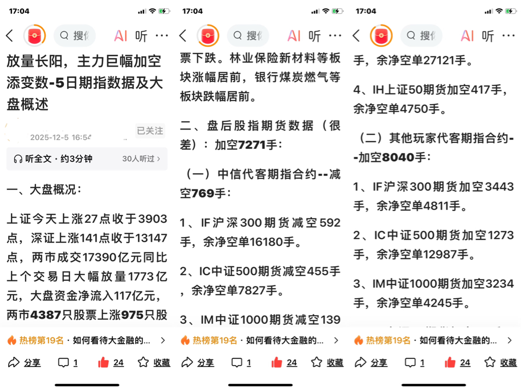 早盘心惊胆颤,收盘喜上眉梢,恭喜抄底成功的股友们不过今天的加空单有点大,虽然总额