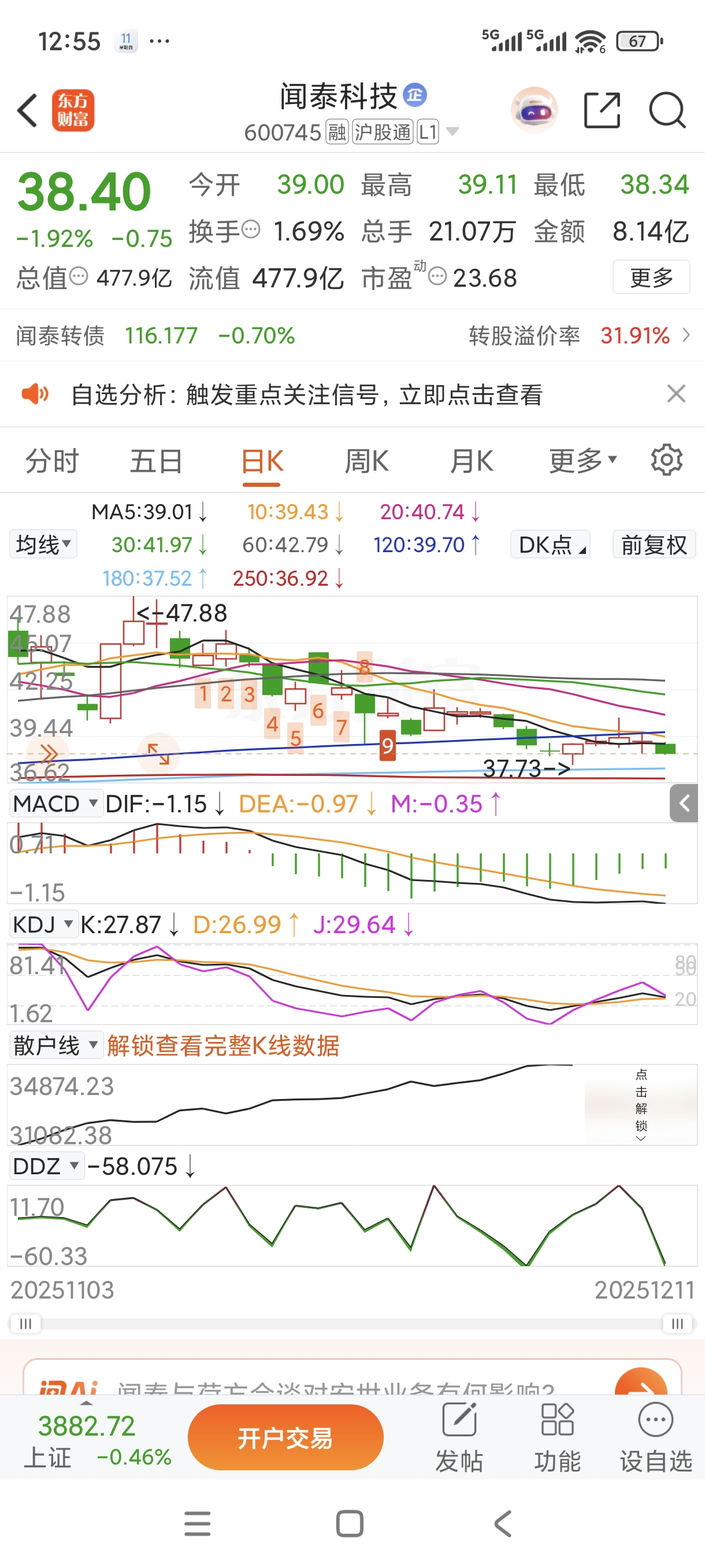 $闻泰科技(SH600745)$ 明天可能低开高走吗?