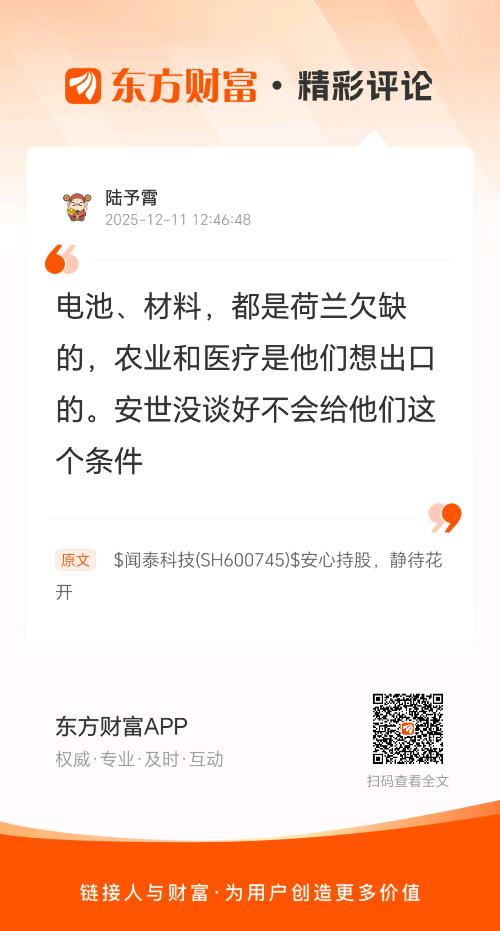 //@陆予霄 :电池、材料,都是荷兰欠缺的,农业和医疗是他们想出口的。安世没谈好不会给他们这个条件