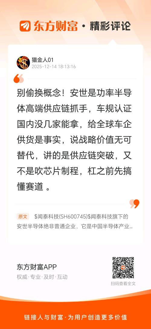 $闻泰科技(SH600745)$ 闻泰科技旗下的安世半导体绝非普通企业,它是中国半导体产业切入全球高端供应链的核心抓手,更是关乎国内新能源汽车、第三代半导体等战略产业的关键节点,国家层面介入协调,正是因为其战略价值无可替代。