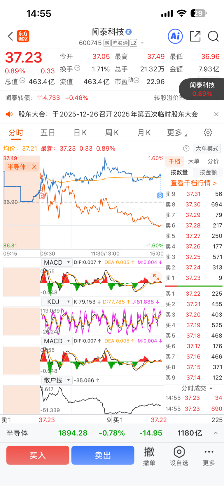 $闻泰科技(SH600745)$ 早上加仓晚上减仓,不赔不赚,但还是留出点子弹,防止周一下跌,还是不能全仓,风险太大了,下周一涨的话,我更开心,快让我解套吧哈哈哈哈哈