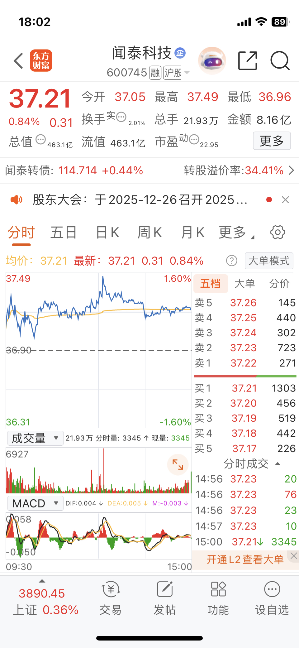 $闻泰科技(SH600745)$ 收盘3721。这寓意是啥?