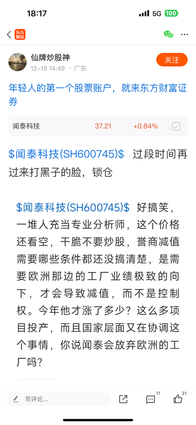 $闻泰科技(SH600745)$ 股王说锁仓,到时来打黑子的脸,所以大家不要慌