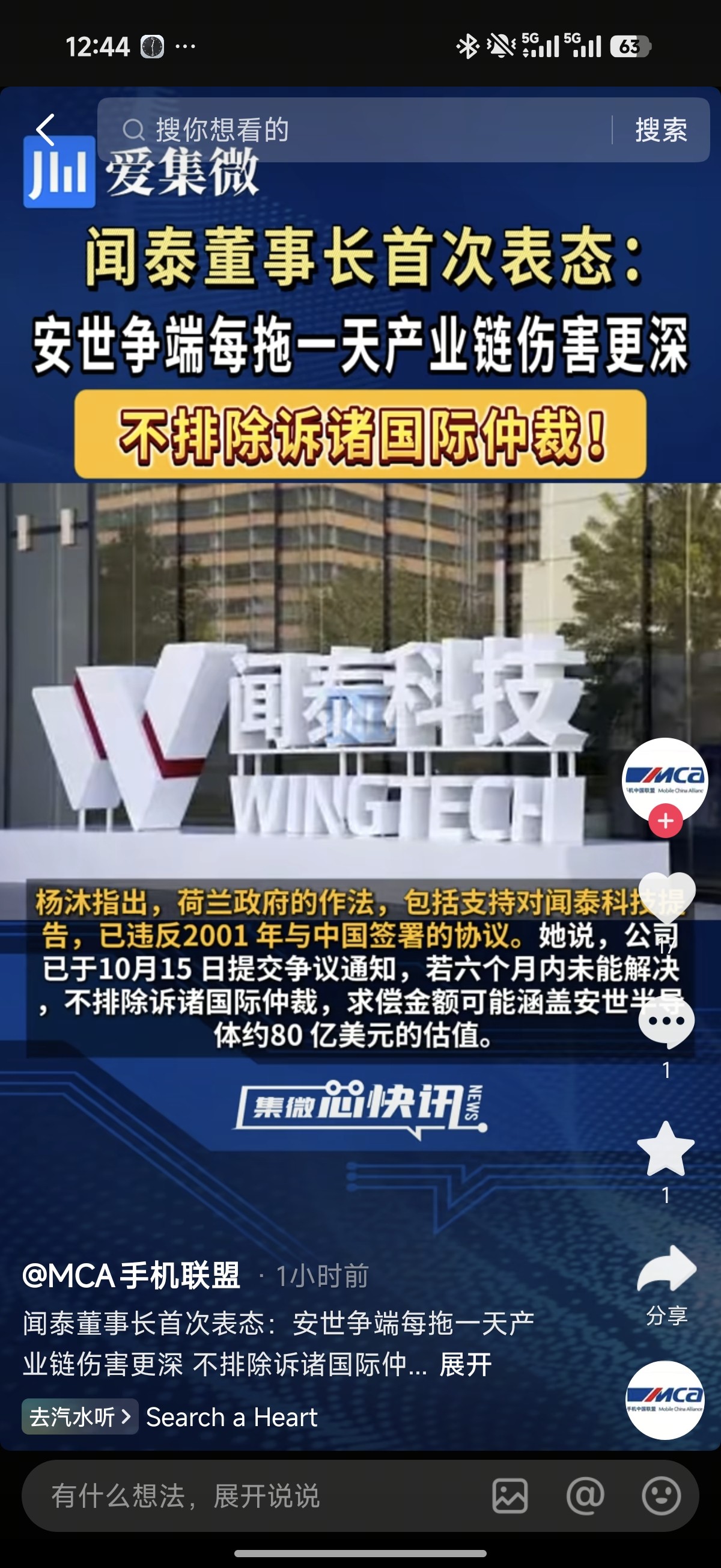 已于10月15日提交争议通知,若六个月内未能解决,不排除诉诸国际仲裁,求偿金额可能涵盖安世光