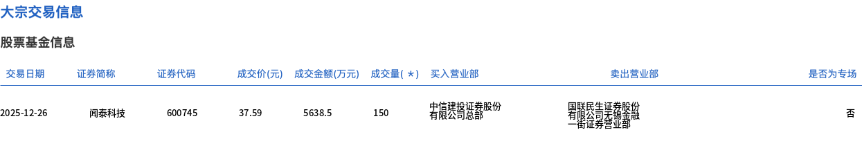 闻泰科技今日大宗交易折价成交150万股,成交额5638.5万元