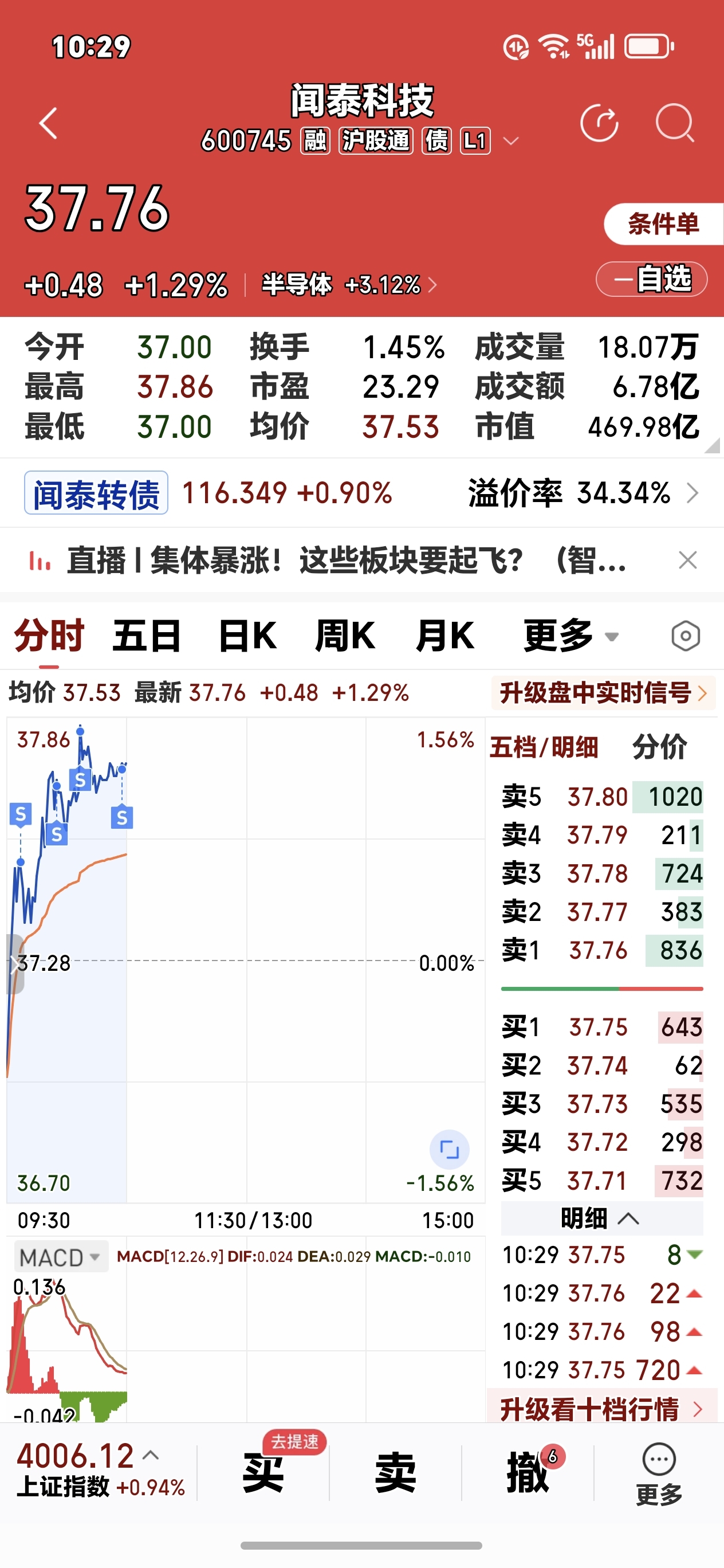 $闻泰科技(SH600745)$ 卖了大部分,上攻无力