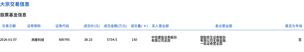 闻泰科技今日大宗交易折价成交150万股 成交额5734.5万元