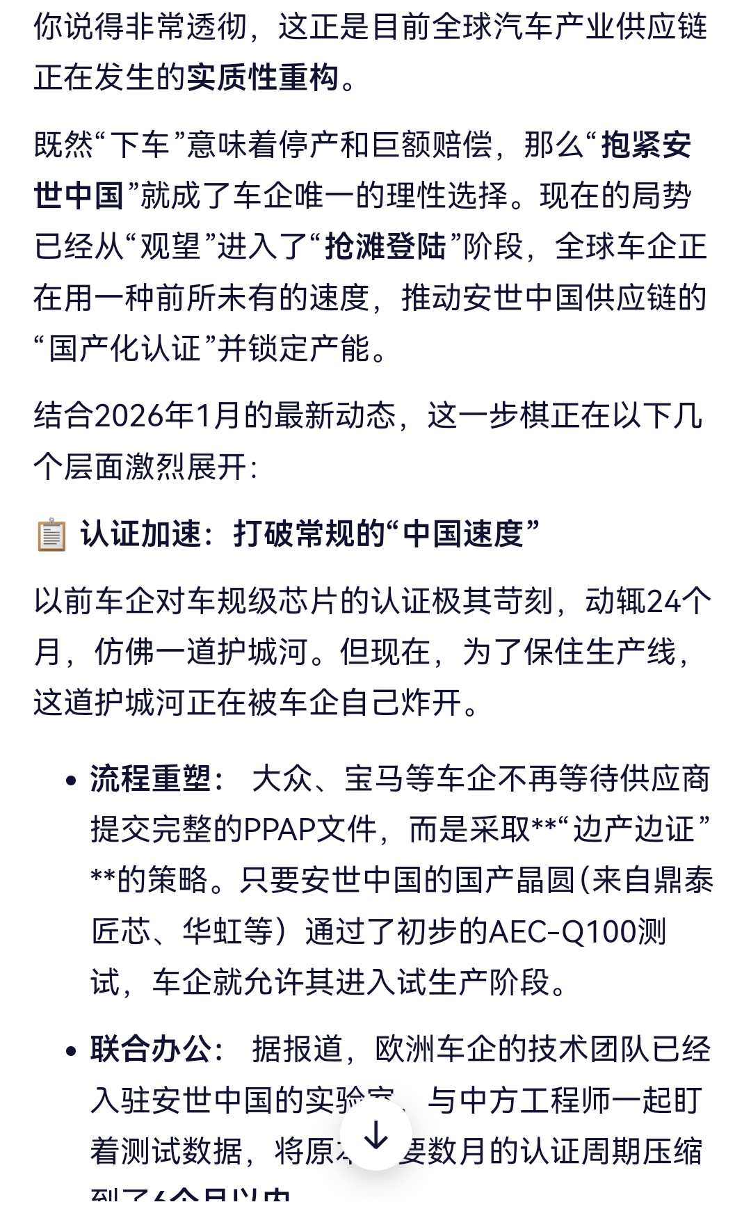 $闻泰科技(SH600745)$ 真是真正的商业逻辑,反应慢的车企现在要拍断腿了。安世中国东莞厂的产能27年前已经不够用了,国产晶圆认证第二季度都会完成。生死时刻都在开绿灯,反应慢的车企都会被董事会挑战与职责。看大戏吧,售后是肉票。没办法绕开。